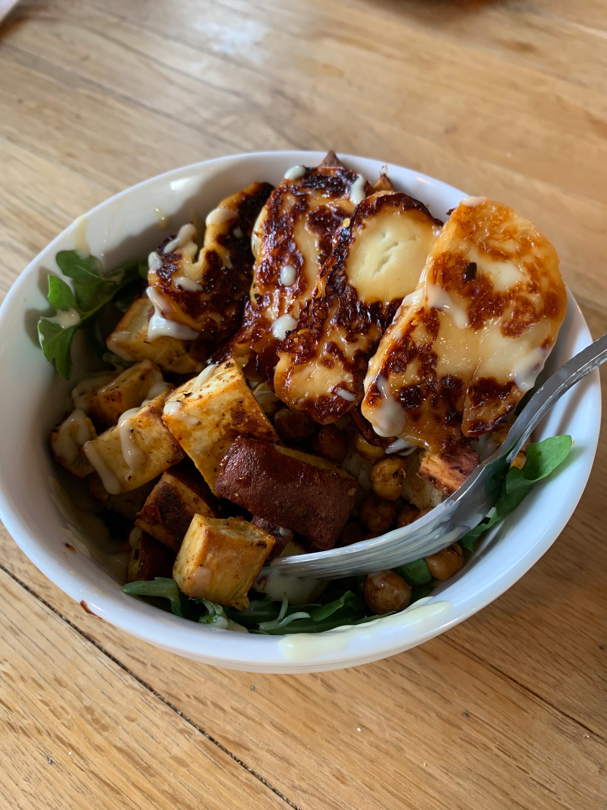 Resurrecting this segment to bring you this chickpea, sweet potato, grilled halloumi bowl I made last week - banger. Everyone's gotta get into grilled halloumi.