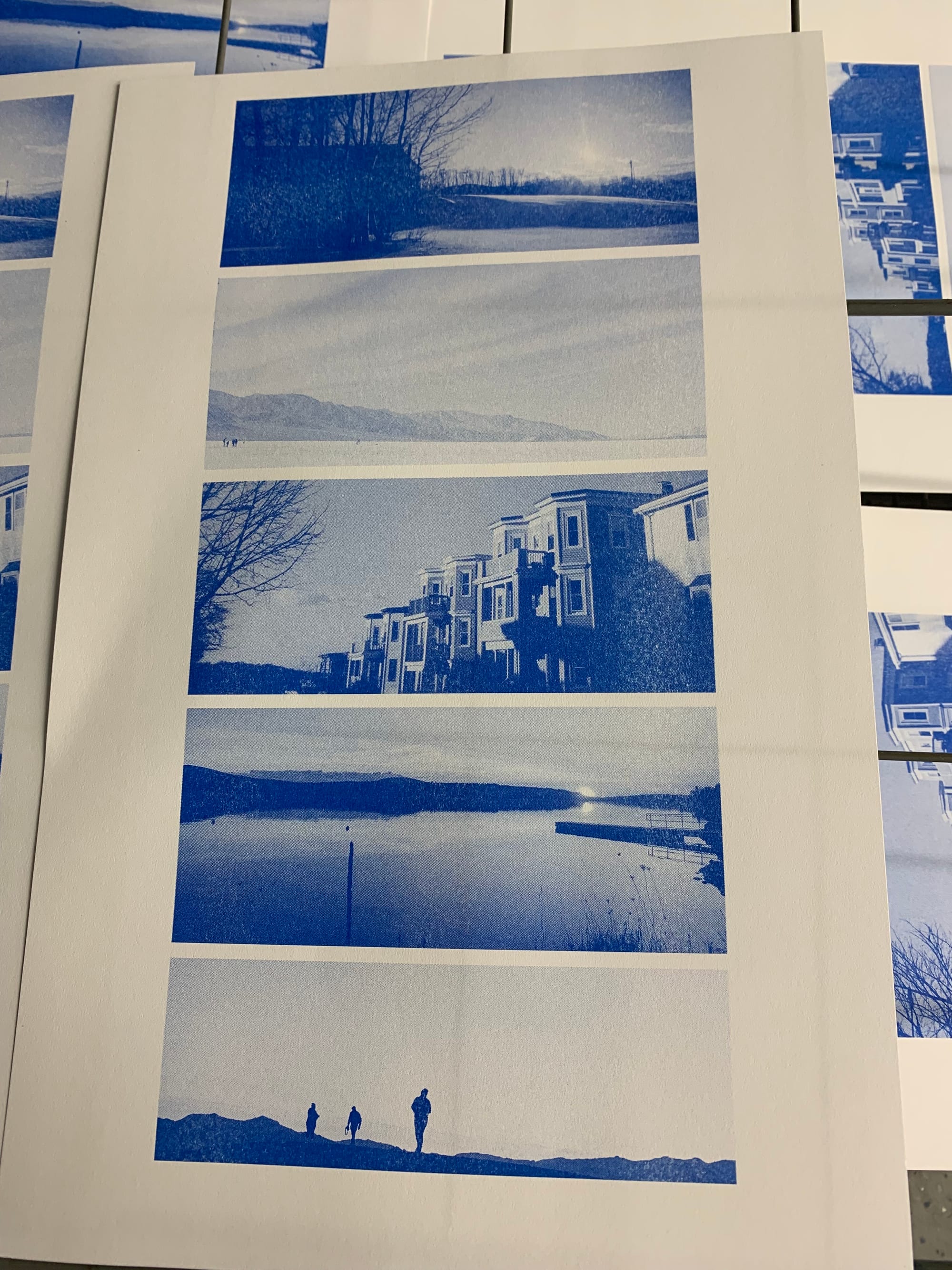 This being an intro class, I came kind of wildly unprepared and ended up using a few film photos to make a print with and chose just one color at one opacity. I love the result but if given the chance I think I would try to layer colors or try scanning in a hand drawn image.