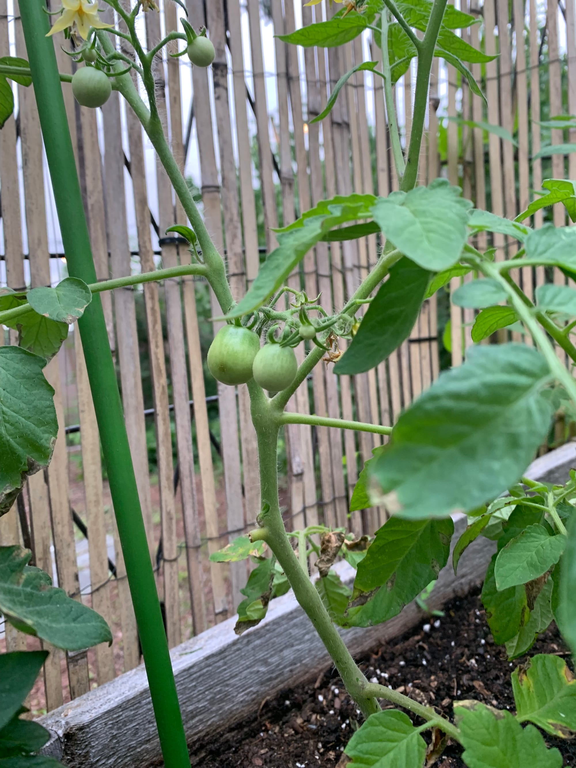 Huge update on the home gardening front: tomatoes are coming in! Everything else we've planted has been mostly eaten by rabbits and squirrels but the tomatoes are going very strong.