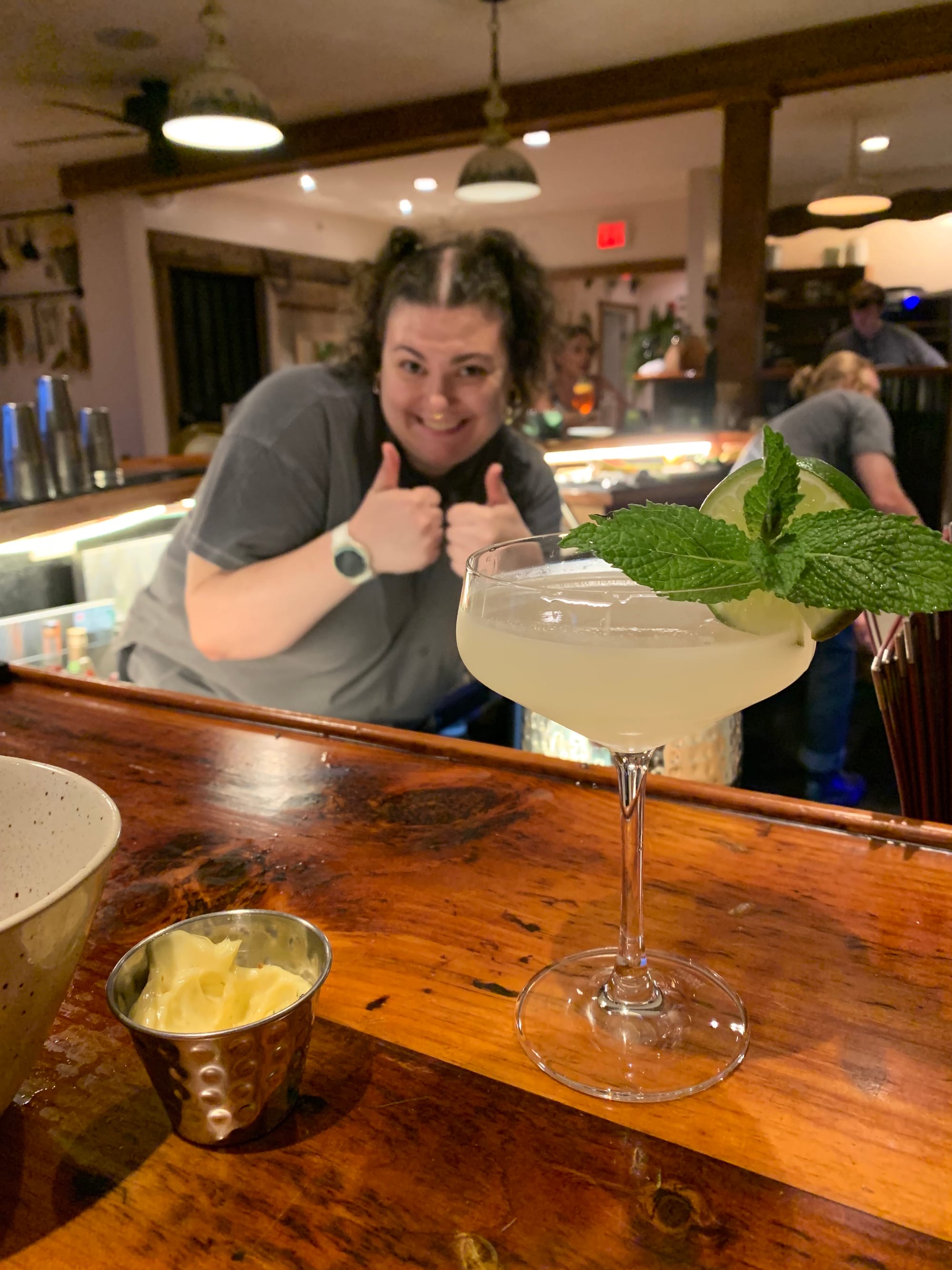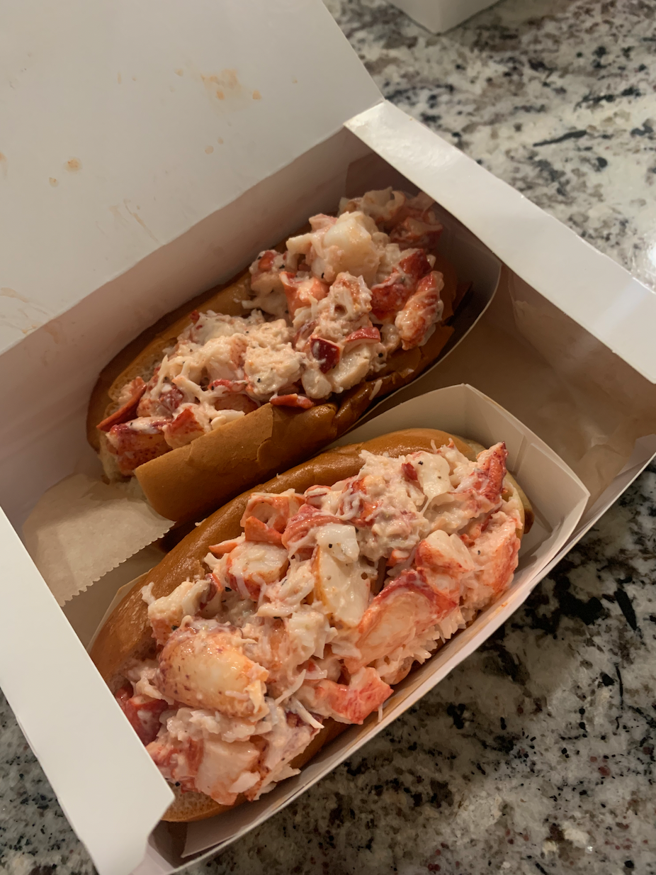 crab cake benedict and blueberry ricotta french toast from Cove Cafe in Ogunquit, lobster rolls from Ocean Roll in Kennebunk, and a combo french 75/gin gimlet Amy made me at Chez Rosa in Kennebunk