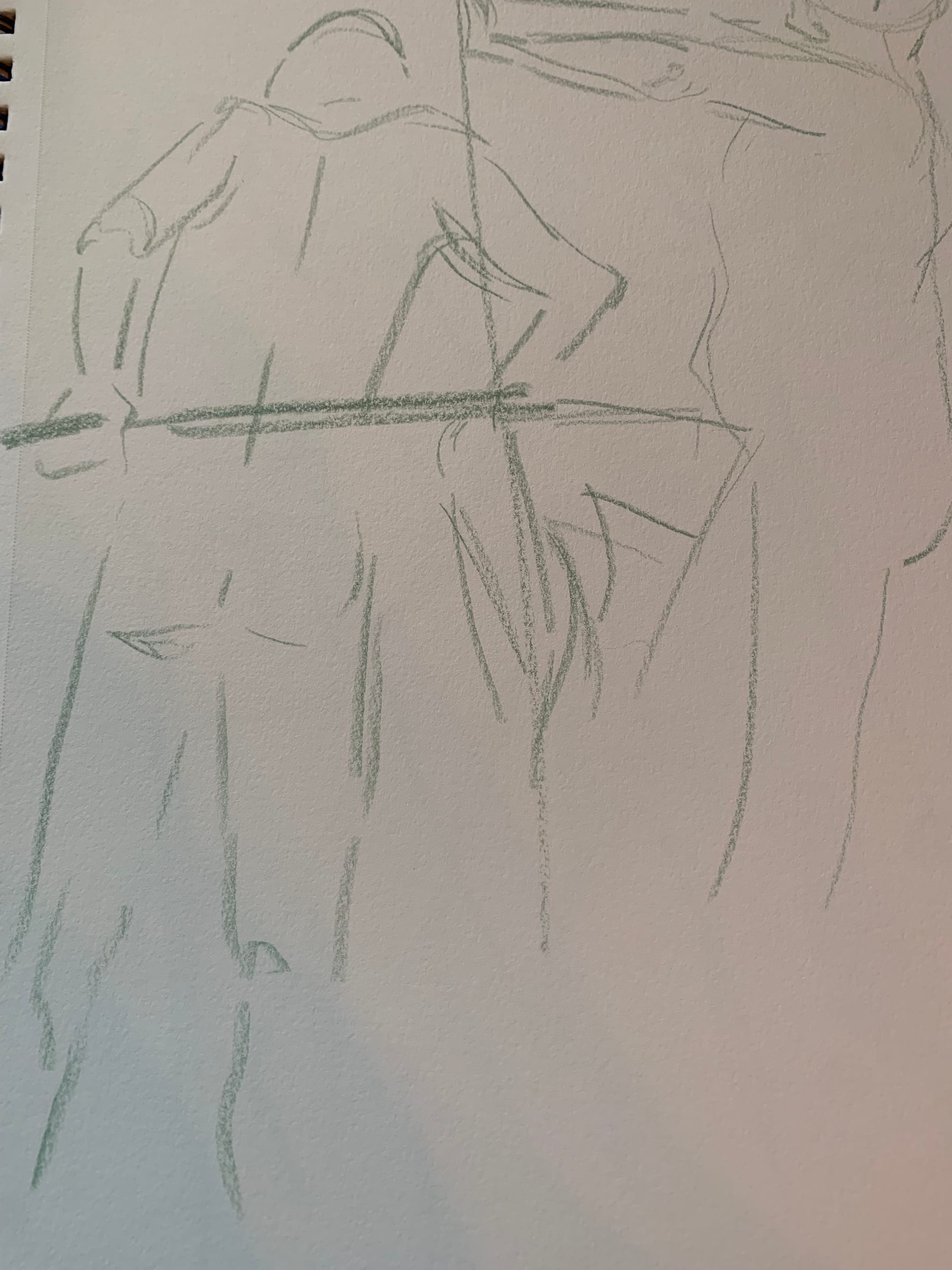 I discovered from watching another person draw, how to block out the figure in a marker wash and then kinda carve back in the lines and shapes. I tried that with the long poses to varying degrees of success.