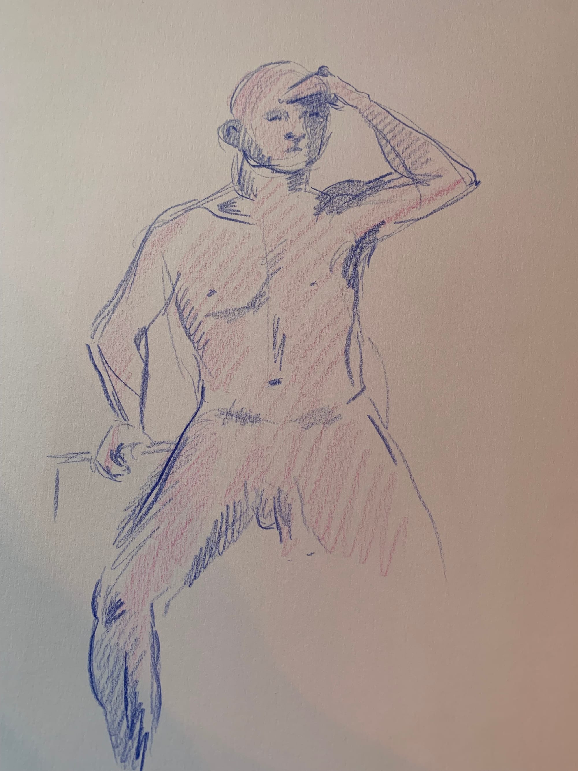 This week I went to a life drawing event in JP over at Jameson and Thompson Framing off the southwest corridor. This was my first time coming to this meeting and it was great. There was no instruction, we just came in and drew for 2 hours which I loved. My drawings I felt like were a mixed bag but I had fun trying out materials and colors. Also, this is your NSFW warning for hand-drawn, penis-shaped lumps if you're not into that kinda thing.