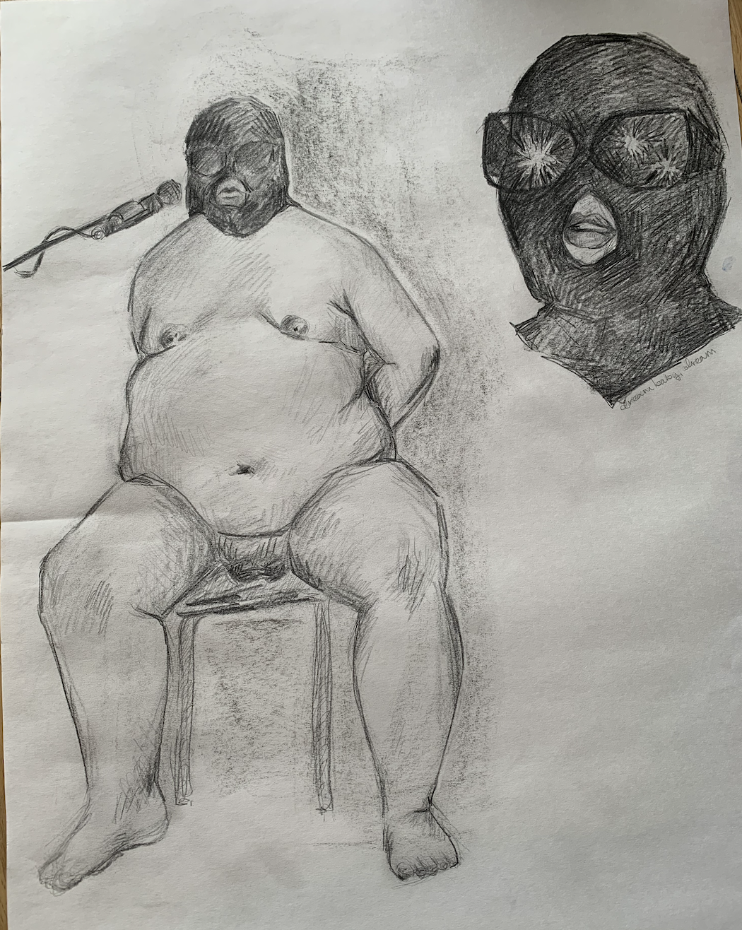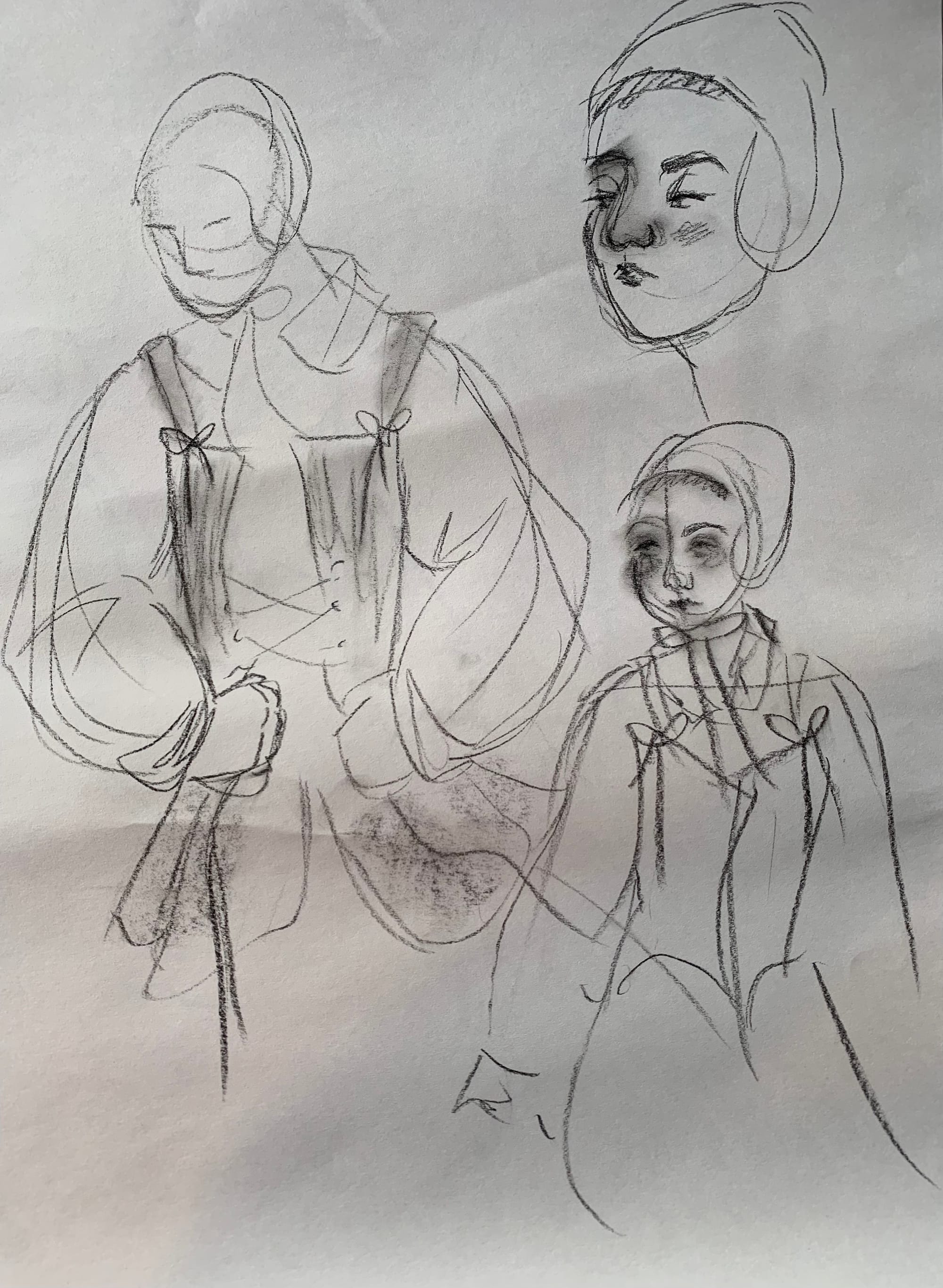 Drawings from historical clothing night and from a performance art piece by Dorian Wood