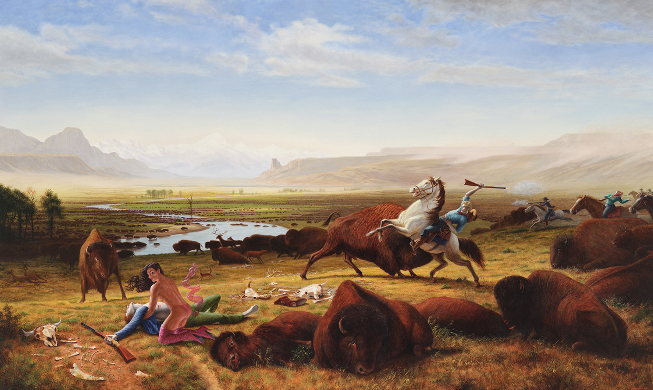 For the purposes of the class last week, we looked at a few paintings that he modeled directly off of 18/19th century painters who were making works about the American West. There's a very interesting video about how he runs his studio and how he utilizes assistants to help him create his enormous pieces. We compared and contrasted for like a full 90 minutes about these. I'll spare you all the details and let you draw your own conclusions.