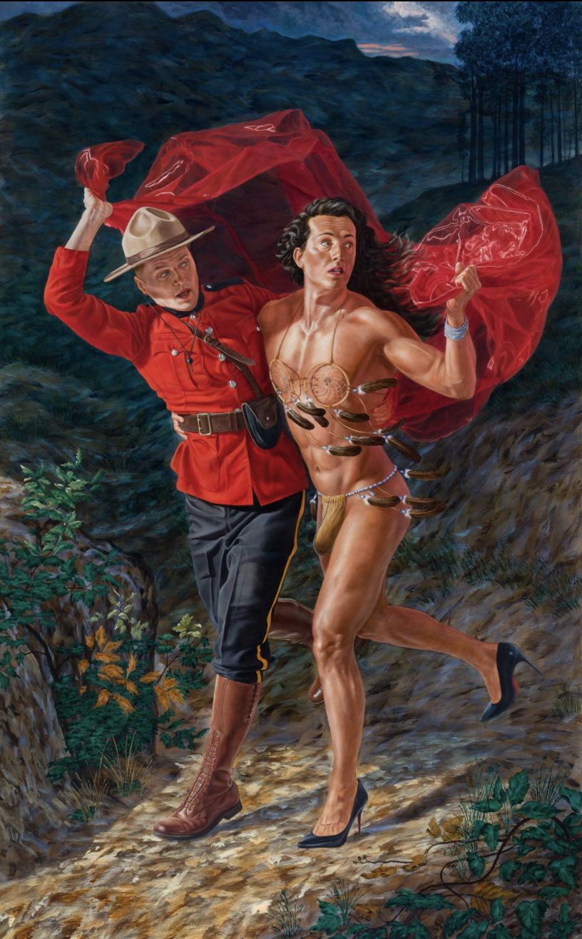 The class is about North American Indigenous peoples and colonialism and this past week we discussed contemporary Indigenous art and music and reclaiming Native identity through the arts. In particular, we looked at the paintings of Kent Monkman - a member of ocêkwi sîpiy (Fisher River Cree Nation) in Treaty 5 Territory (Manitoba, Ontario, Canada) and a visual artist.