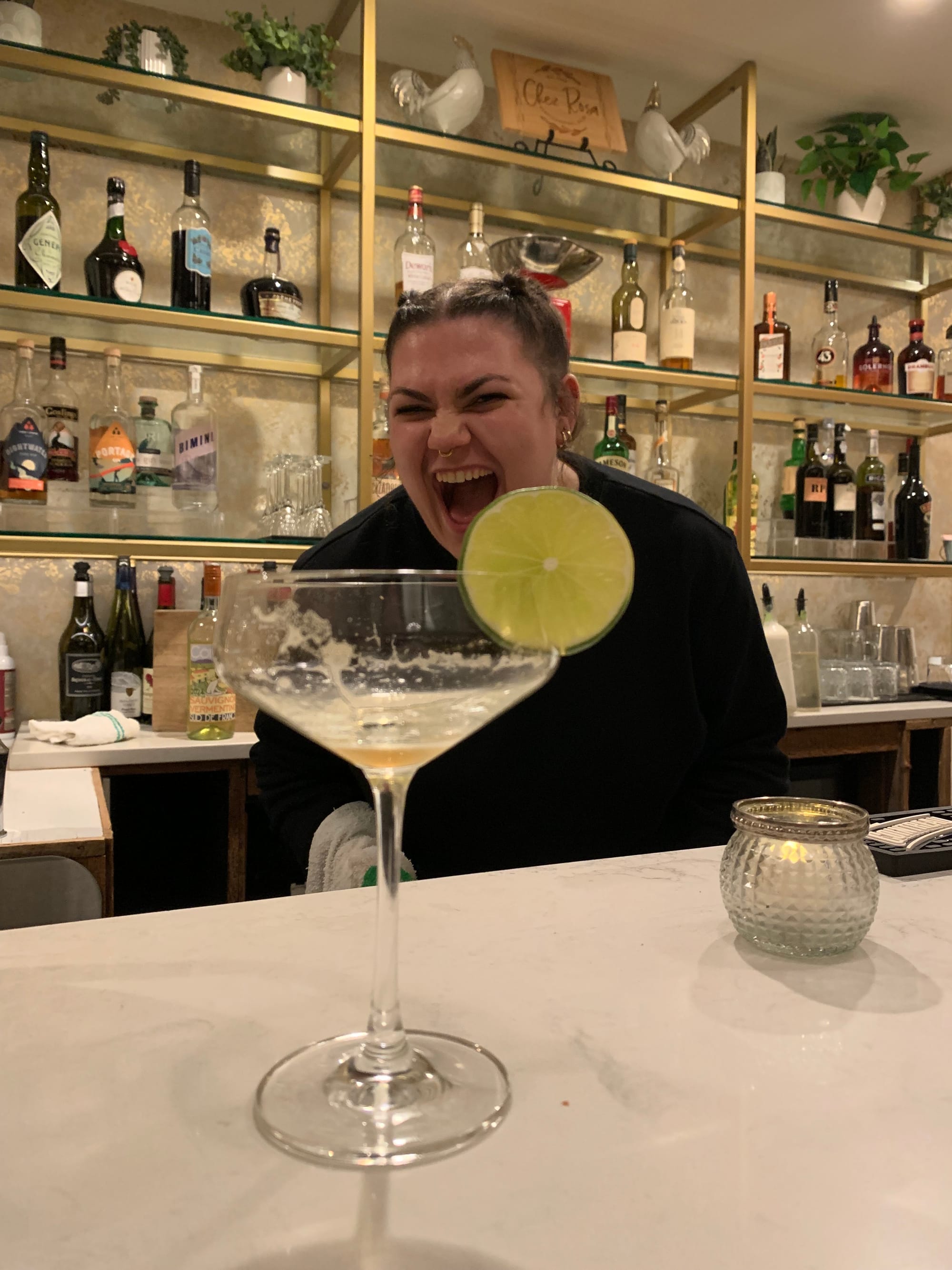 The Industry Sour is equal parts simple syrup, lime juice, fernet-branca, and green chartreuse. She mentioned off hand how she'd love to make this at home but that it's so hard to get bottles of chartreuse because the monks keep dying. Y'all know I was straight to google to learn about the liqueur monks.