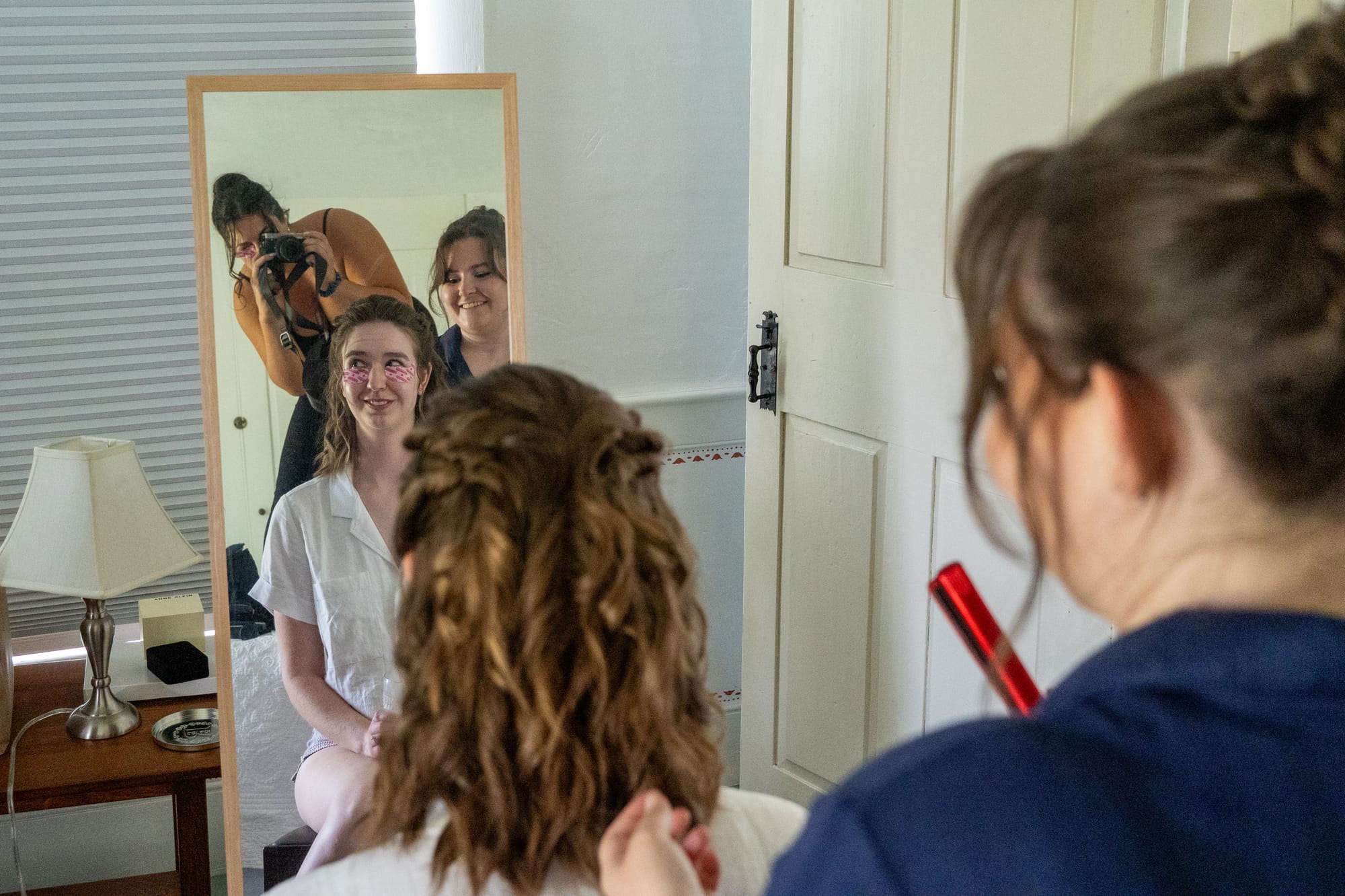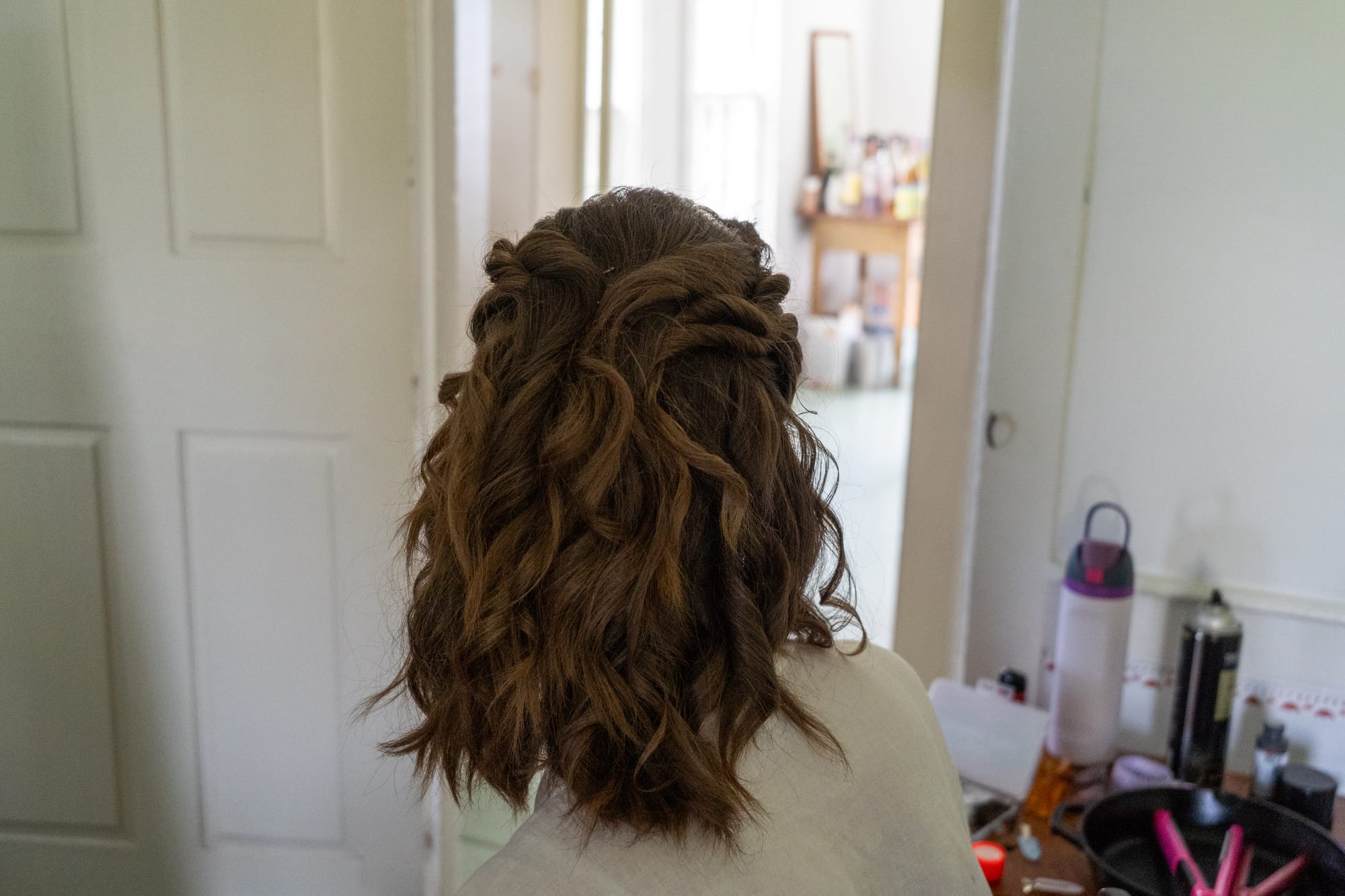 I am not exaggerating when I say that every part of this day was gorgeous. From the vibe of the getting ready room to taking pictures to the ceremony itself and everything after - like truly a picture perfect day. The weather was warm and dry and ever-so-slightly overcast. Nat got everyone in the wedding party together for brunch in the morning and then I split off with Jule to execute bridal hair and makeup. Miss thing asked me very casually back in January to handle a not so casual task and I have spent the last 8 months rotating bobby pin matrixes in my mind. After several bridal hair tutorial youtube videos and several more trips to Sephora, I think we crafted something that came out pretty nice.