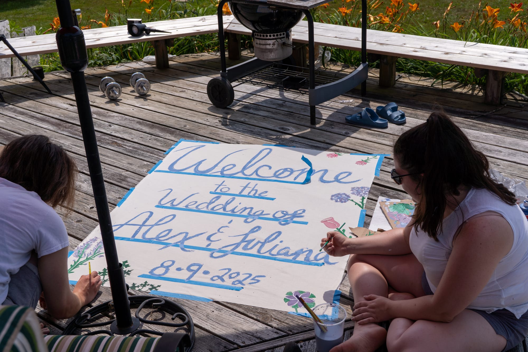 Leading up to the actual event itself, there was much setup. The famous A+J wedding was hosted at the Talbot's vacation home in Newark, Vermont. Several folks have been going up to the house throughout the whole year doing projects to fix up the property in preparation. In the immediate before, there was some beautification needing to be done, as well as some tent raising and of course feeding the crew who was helping out.